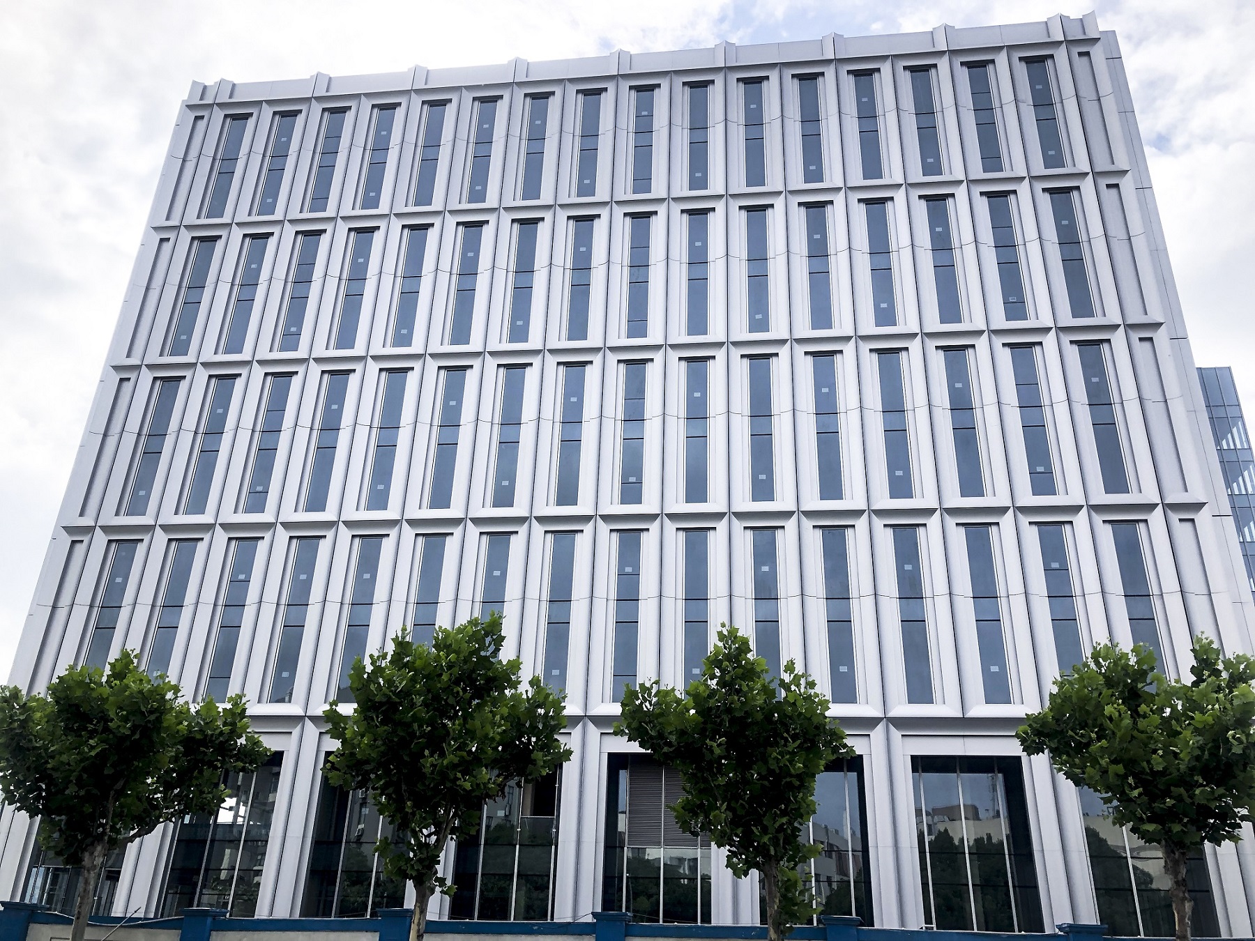 該項目是單元體幕墻結構,現(xiàn)場骨架與鋁板融為一體,鋁板組裝嚴絲合縫,單個單元體使用連接片160余個,其中60個需要機加工,以滿足三邊連接型材,個體螺絲使用量約1200顆。整體組裝后尺寸達到3000*5100mm。