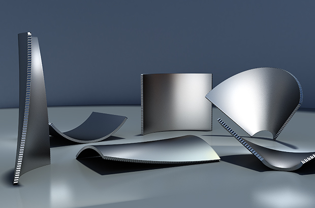 雅泰通過各種技術(shù)攻關(guān),解決雙曲鋁蜂窩板雙扭曲問題,形成了一整套的無折痕鋁蜂窩板的加工成型技術(shù),實(shí)現(xiàn)雙曲鋁蜂窩板的工業(yè)化生產(chǎn)。