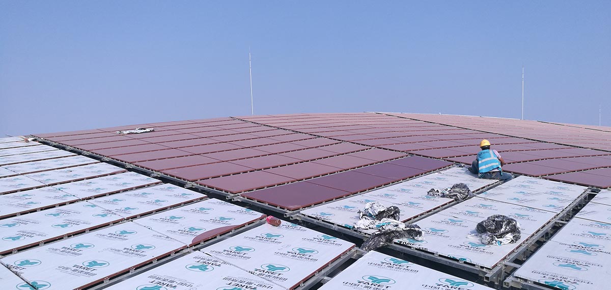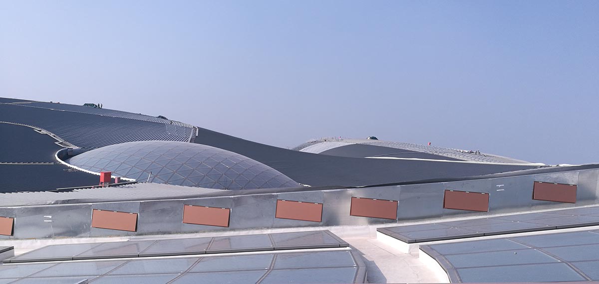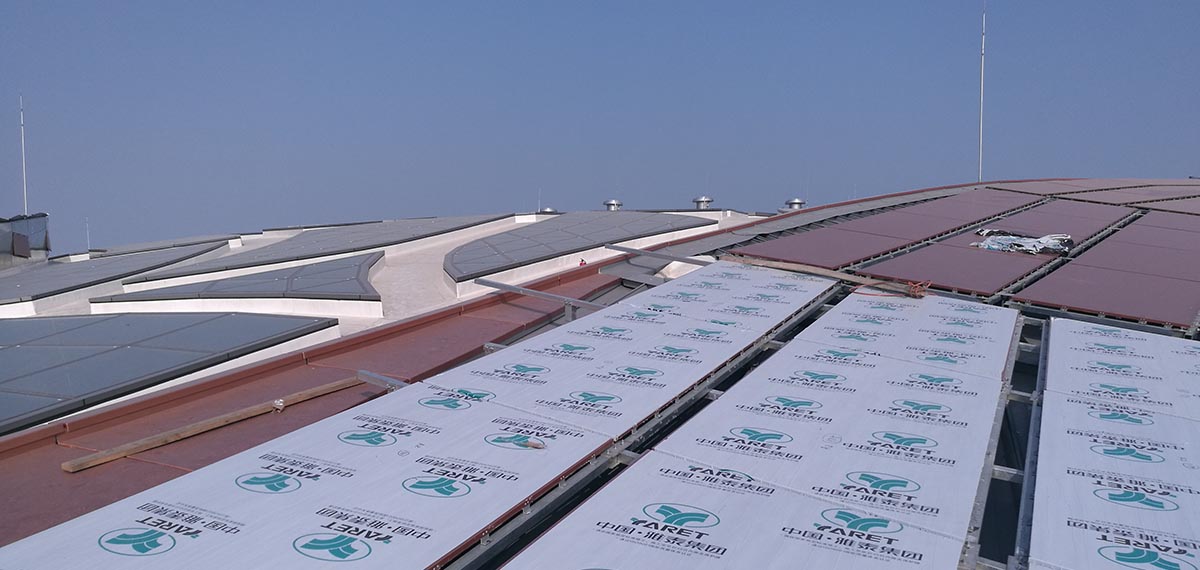 5)屋頂面積:18萬平方米,8根C形柱作支撐,相當(dāng)于25個標(biāo)準(zhǔn)足球場;